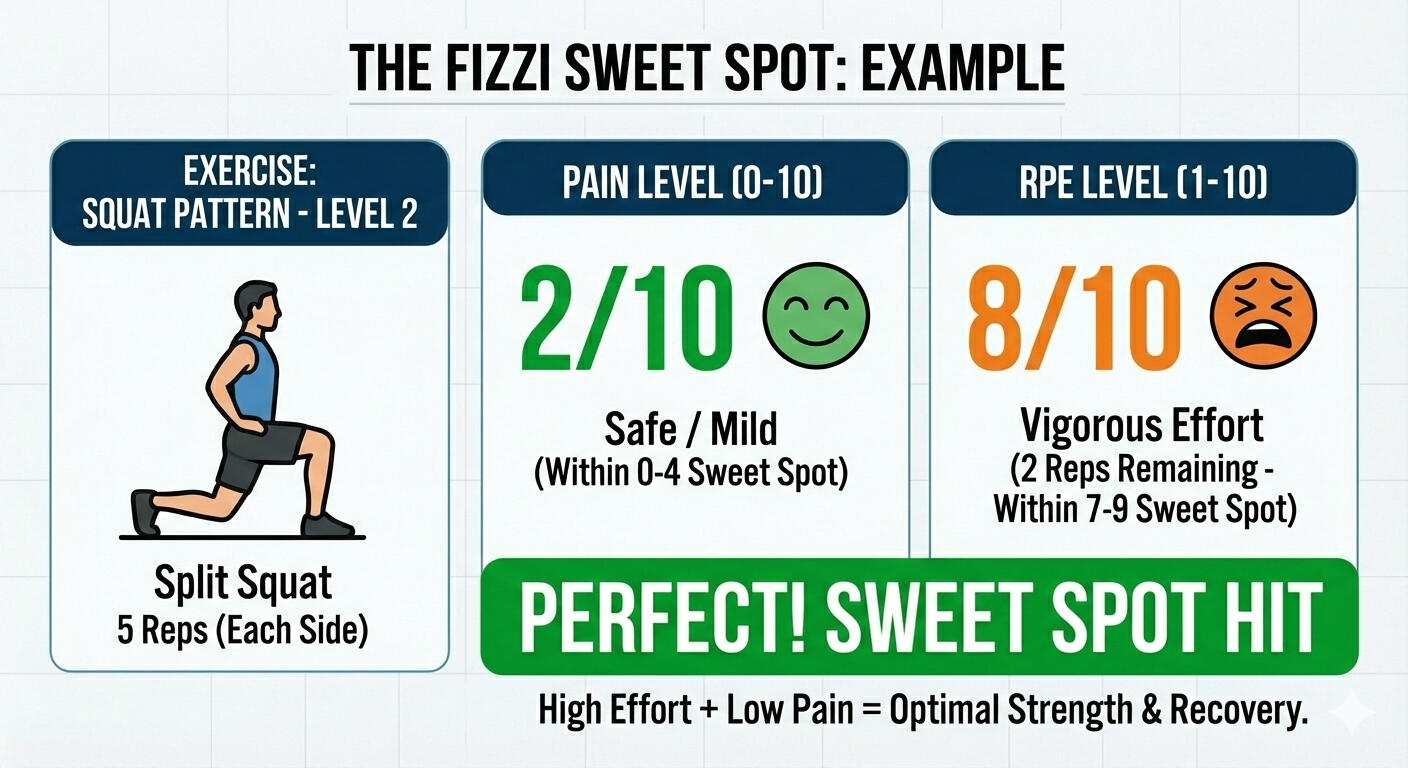 The Fizzi Sweet Spot is a data-driven protocol designed to find the exact level of effort where your body builds strength without causing too much pain.We use two metrics: