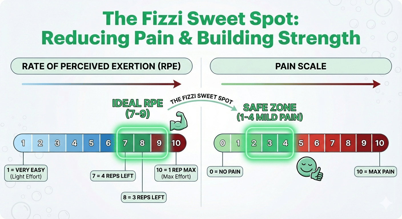 The Pain Scale (1-4/10): You should feel some sensation and pain, but it must stay below a 4. If it's a 0, you aren't challenging the tissue; if it's an 8, you're risking further damage.
