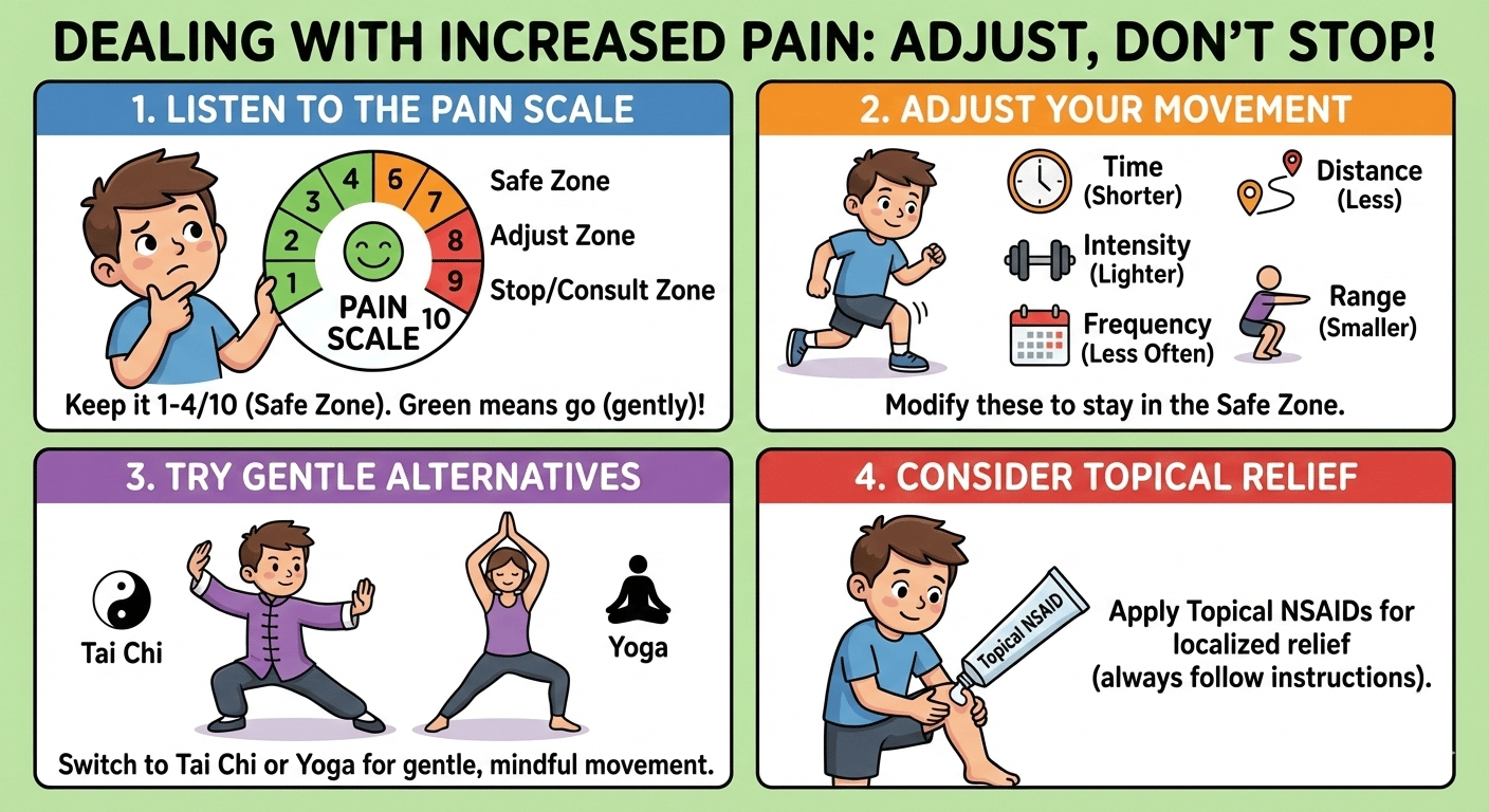If something causes pain to go to 5/10 and up, reduce: